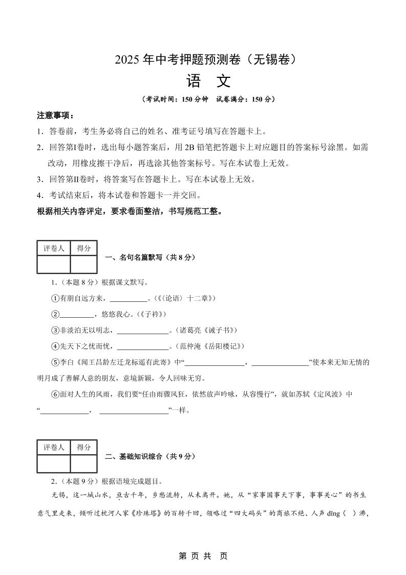 语文(无锡卷)