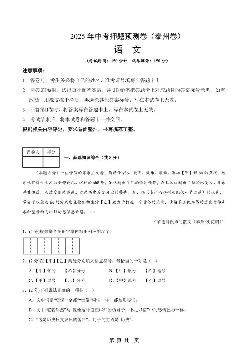语文(泰州卷)