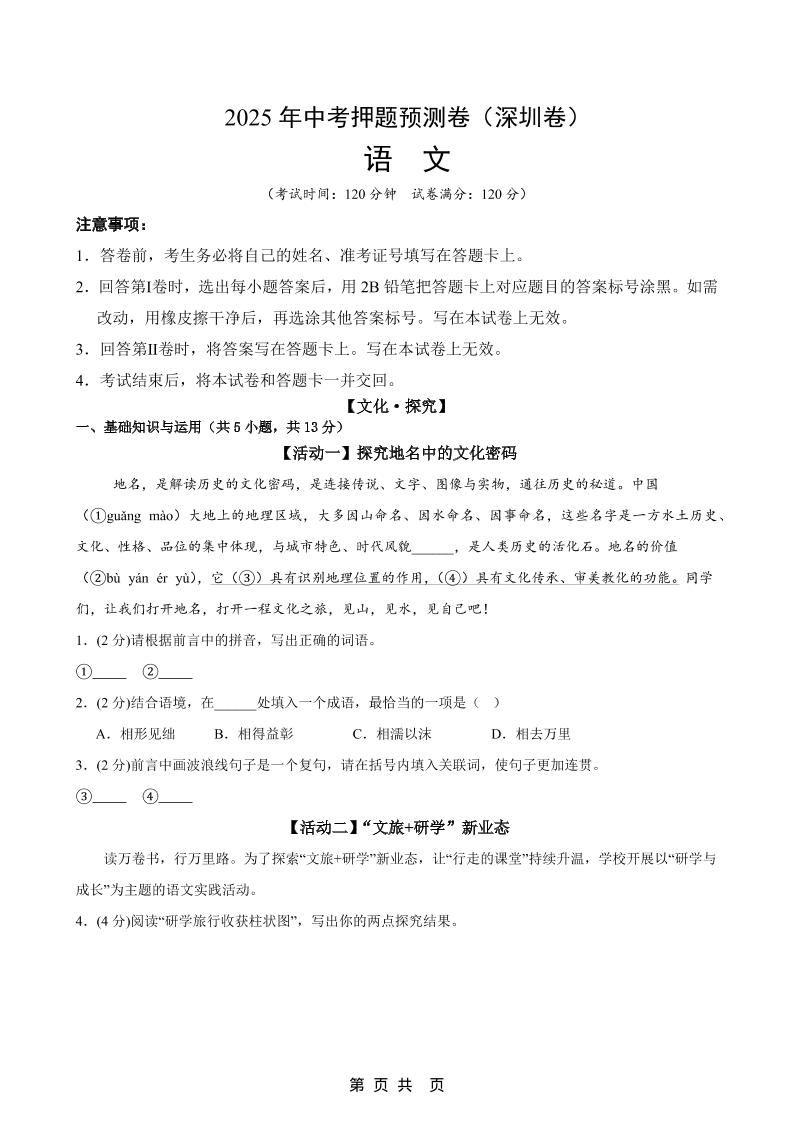 语文(深圳卷01)