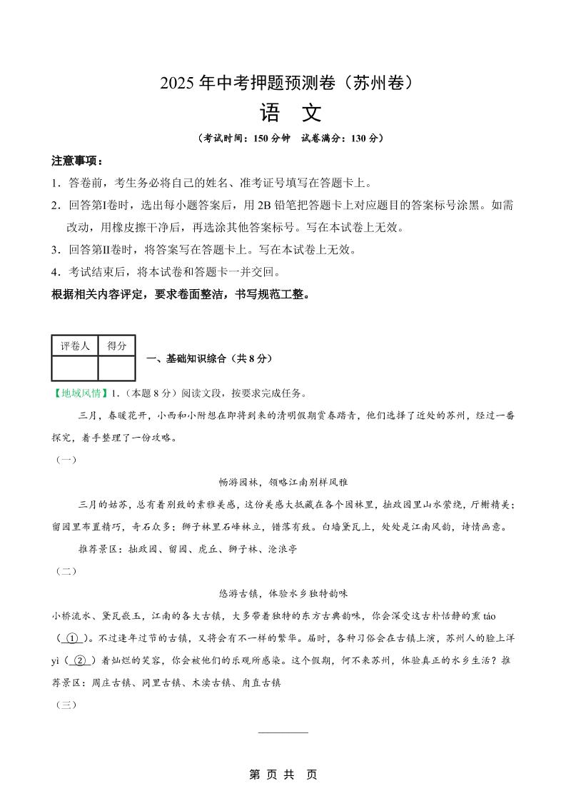 语文(苏州卷)