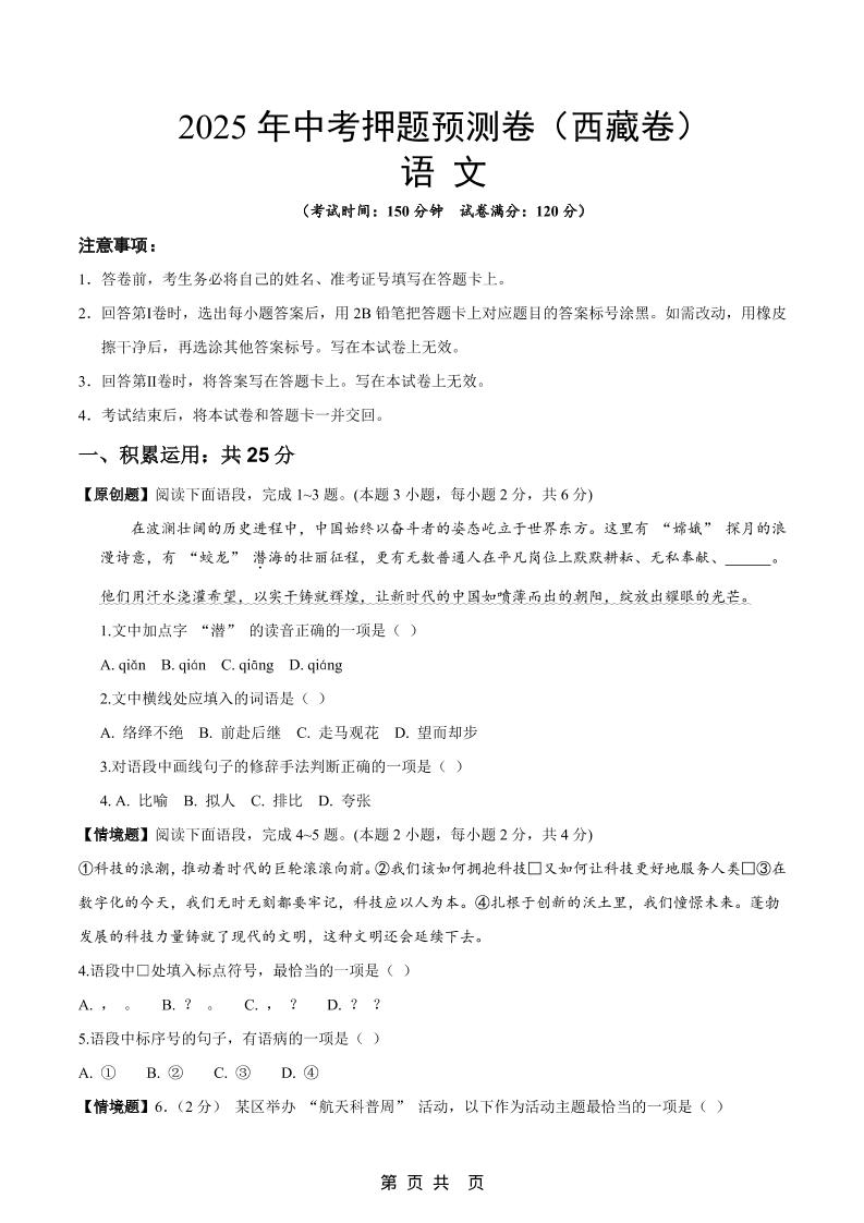 语文(西藏卷)