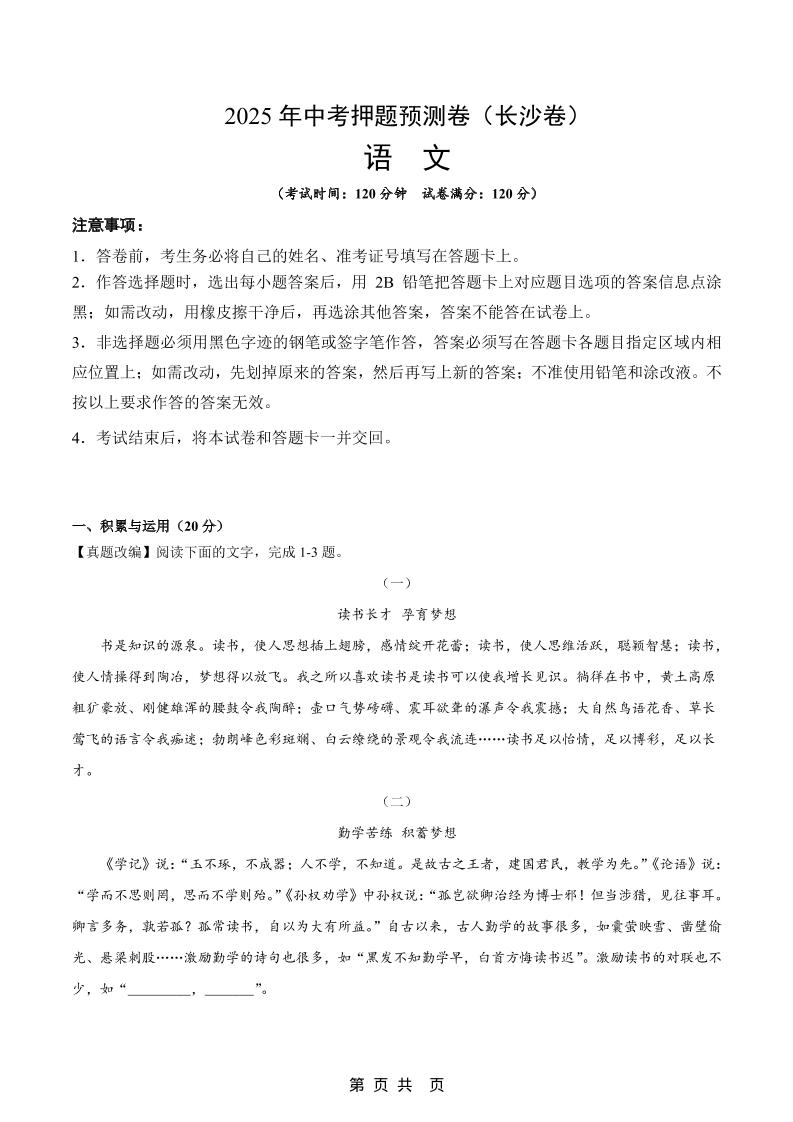 语文(长沙卷)