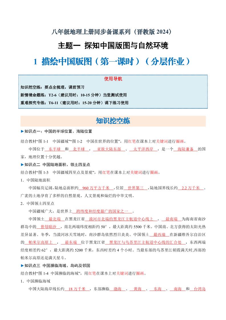 1.1 描绘中国版图(第1课时)(分层作业)(解析版)