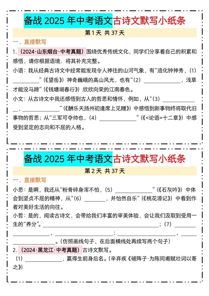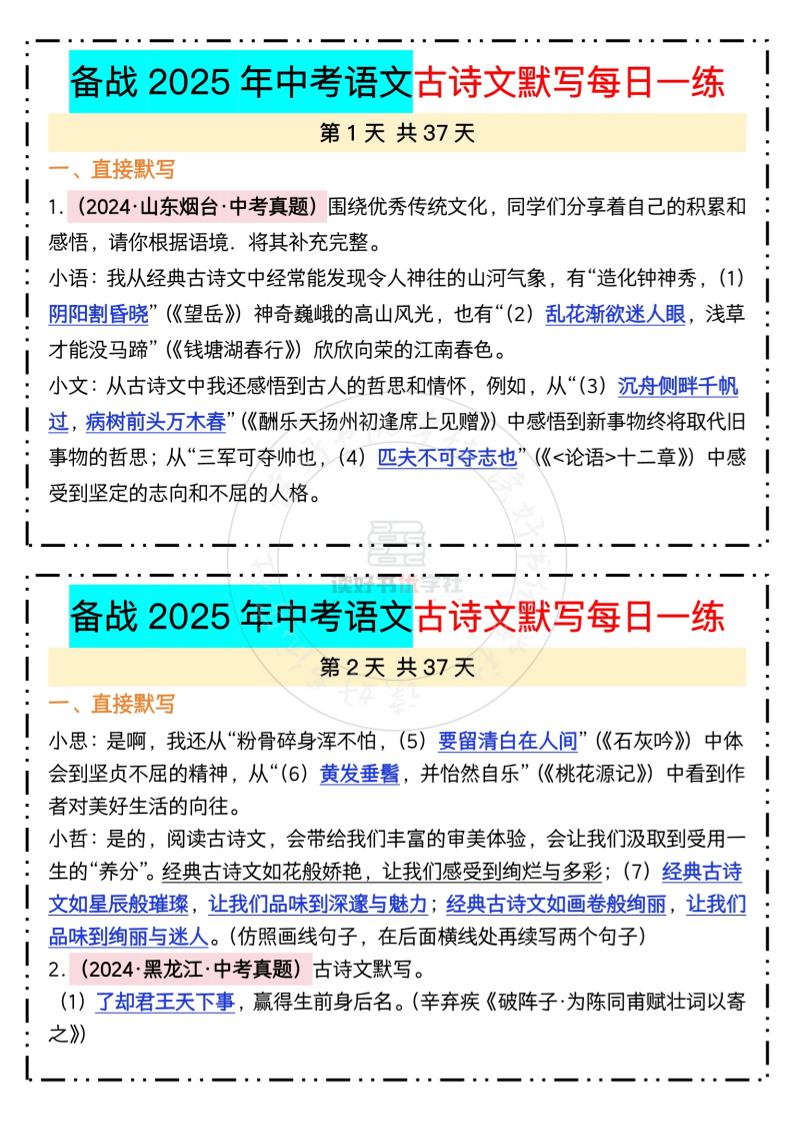 2025中考古诗文每日一练【答案】
