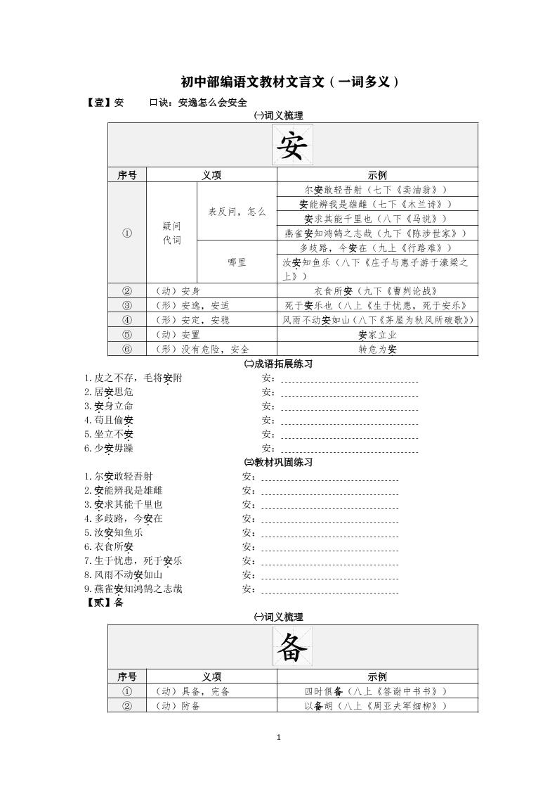 初中文言文实词打卡每日一练