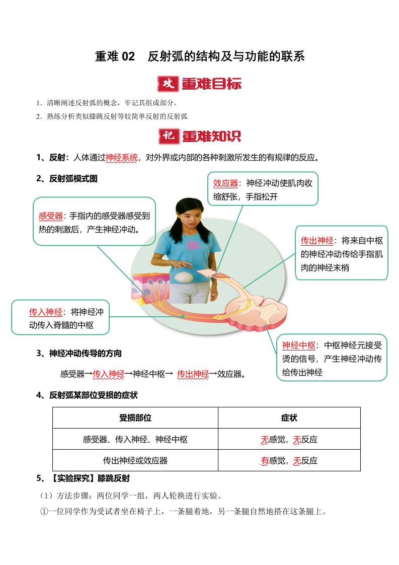 重难02 反射弧的结构及与功能的联系(重难点突破讲义)(学生版)