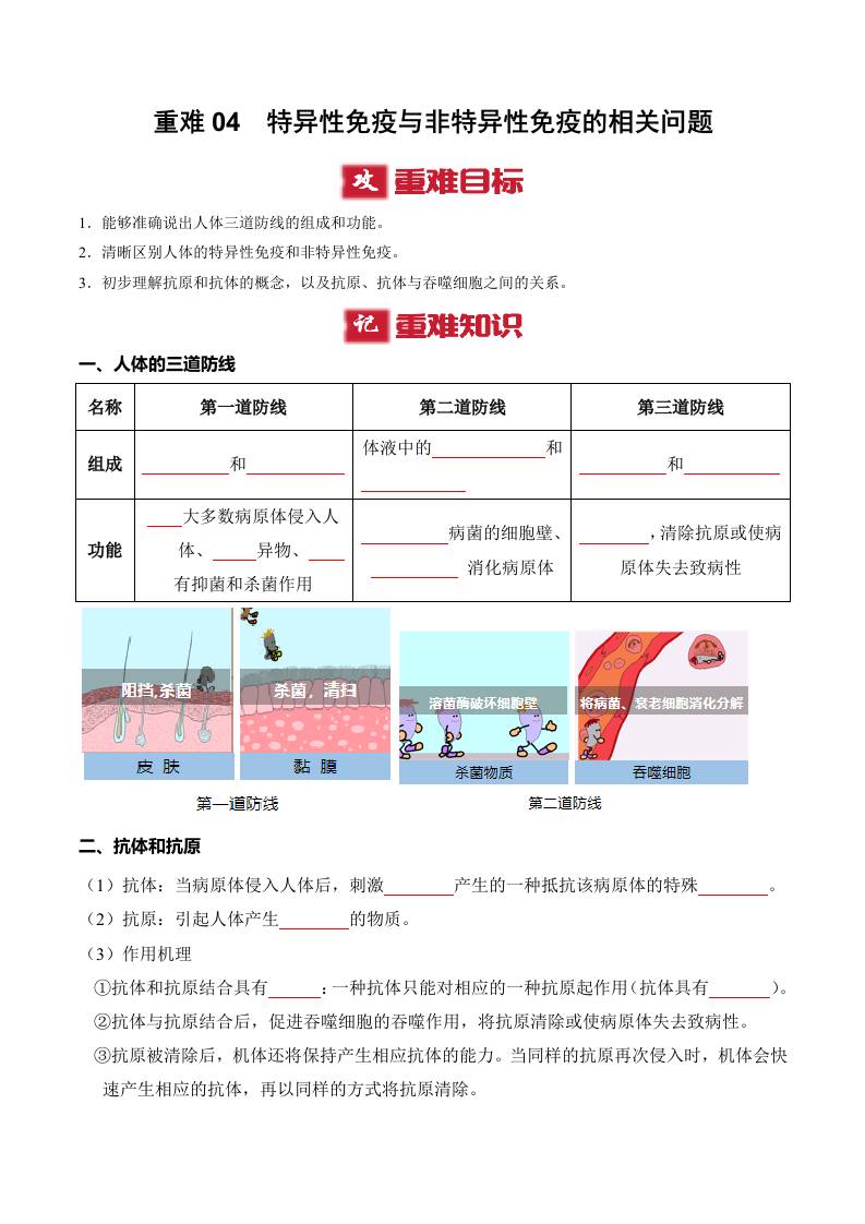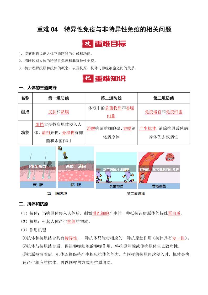 重难04 特异性免疫与非特异性免疫的相关问题(重难点突破讲义)(学生版)