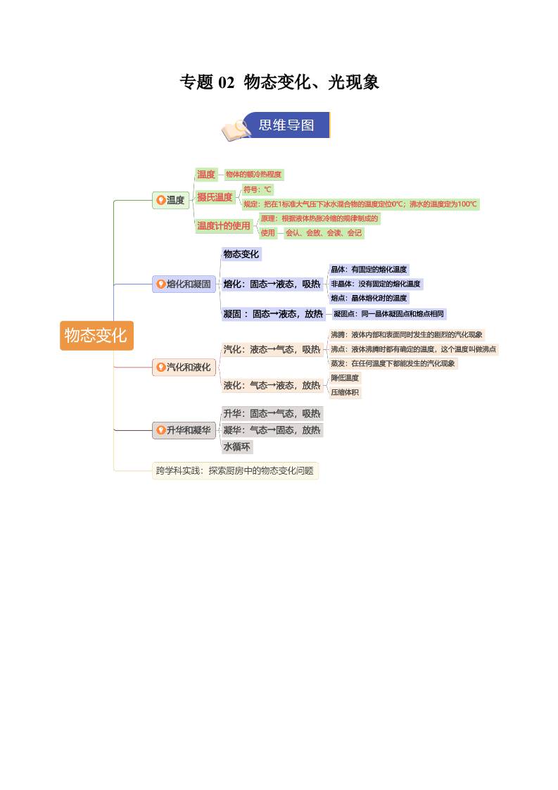 专题02 物态变化 光现象(期中知识清单)(学生版)
