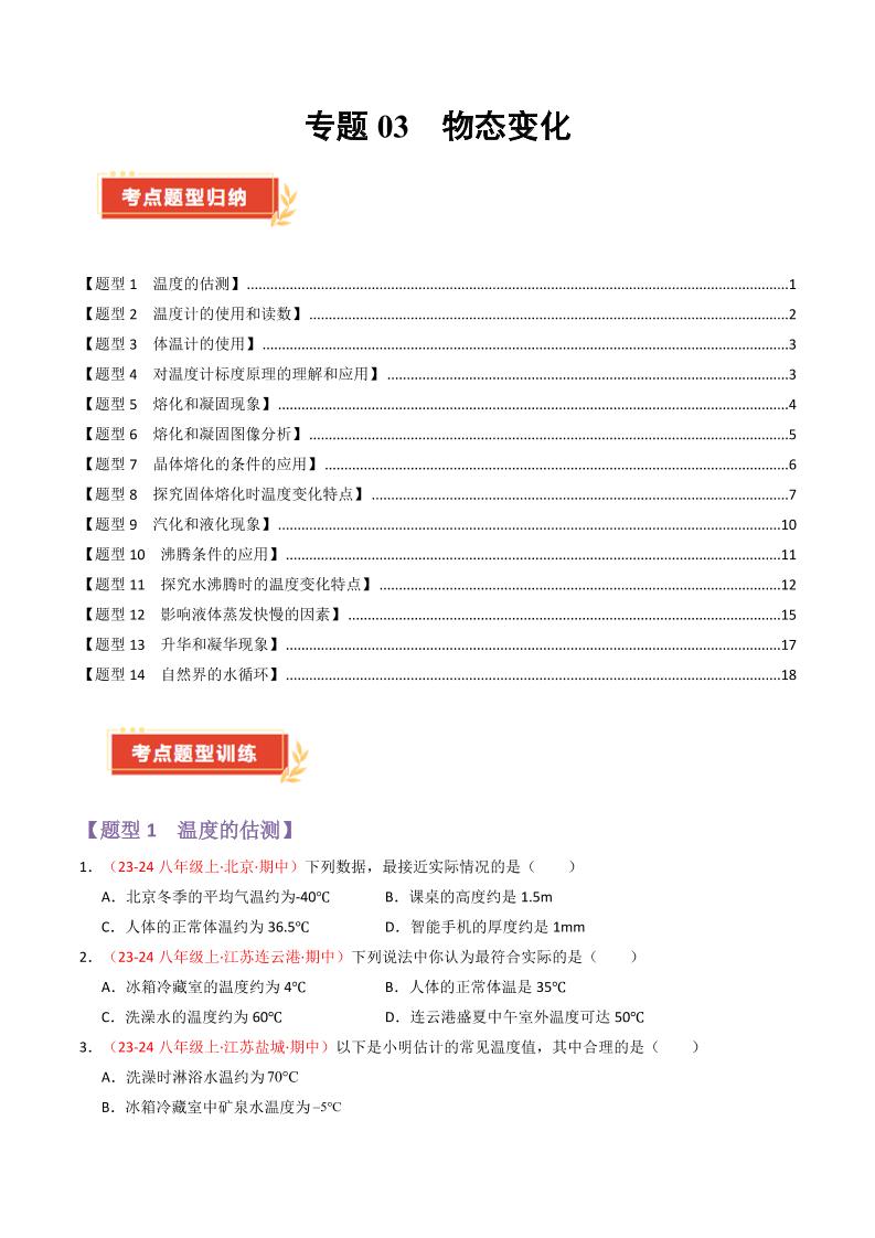 专题03 物态变化【考题猜想】(69题14大类型)(原卷版)