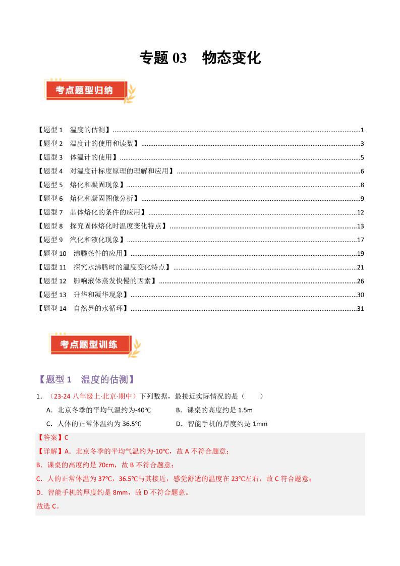 专题03 物态变化【考题猜想】(69题14大类型)(解析版)