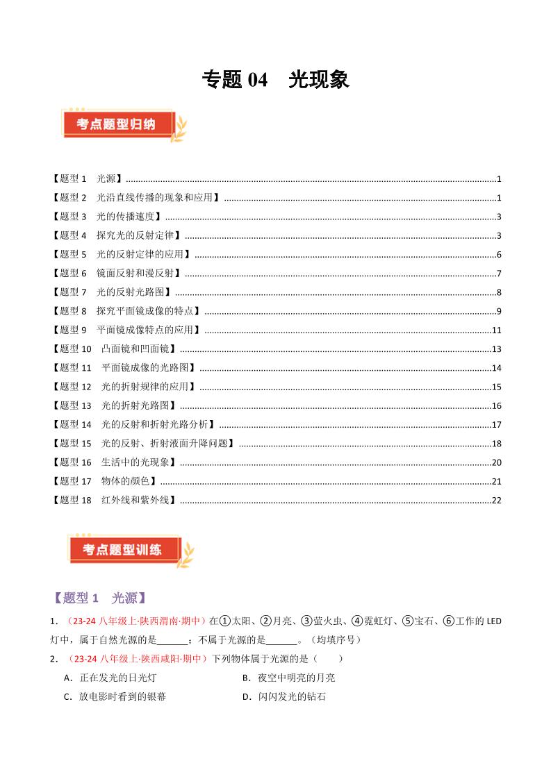 专题04 光现象【考题猜想】(83题18大类型)(原卷版)