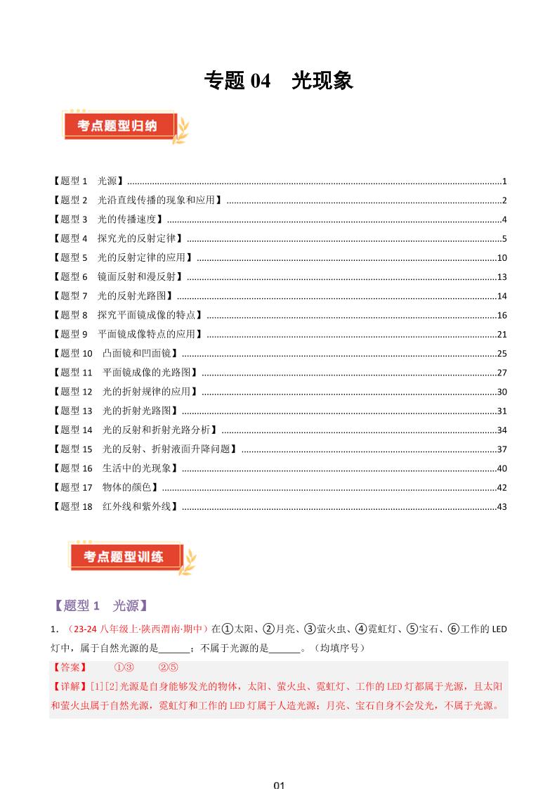 专题04 光现象【考题猜想】(83题18大类型)(解析版)