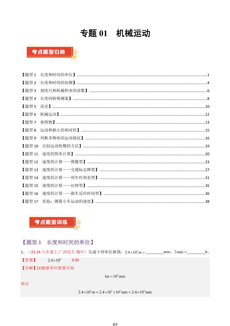 专题01 机械运动【考题猜想】(86题17大类型)(解析版)