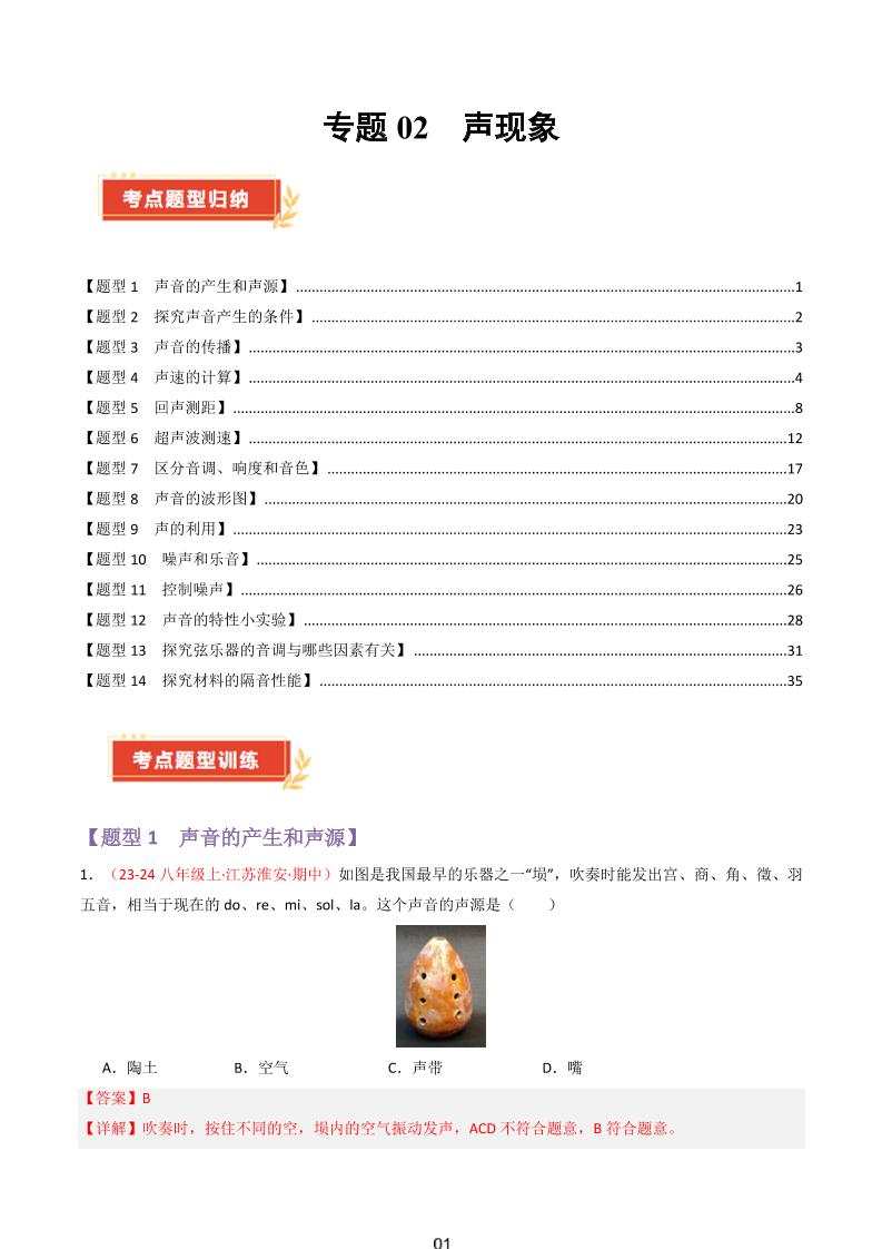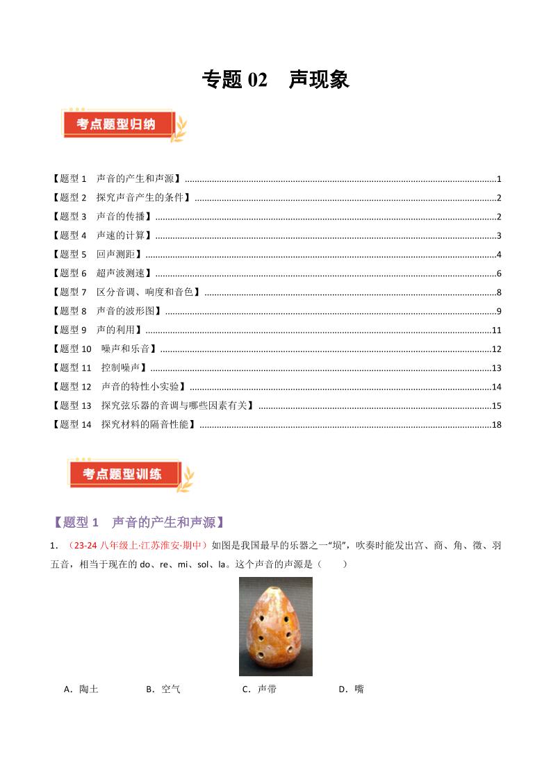 专题02 声现象【考题猜想】(69题14大类型)(原卷版)