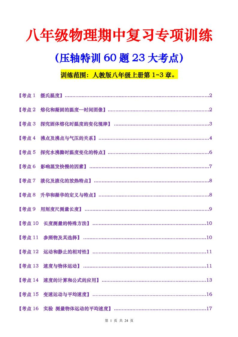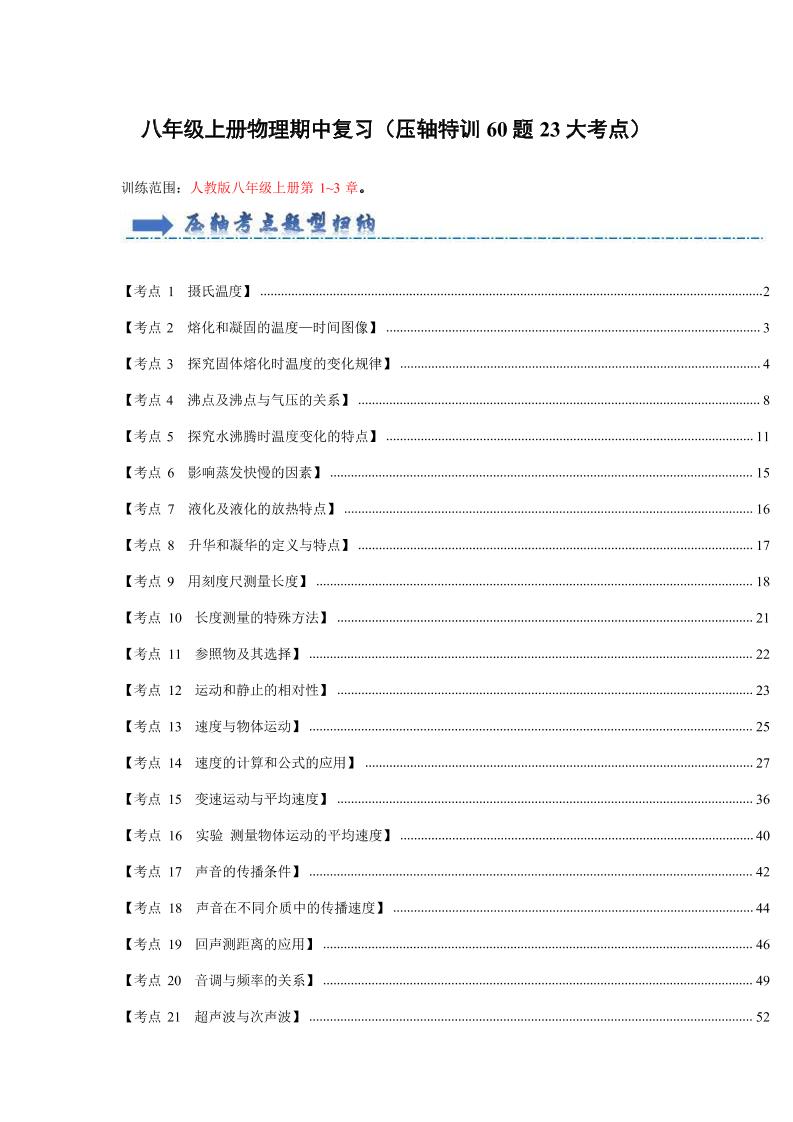 八年级上册物理期中复习(压轴特训60题23大考点)(原卷版)