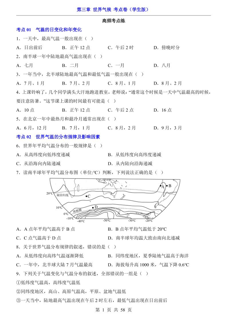 第3章 世界气候(考点卷)