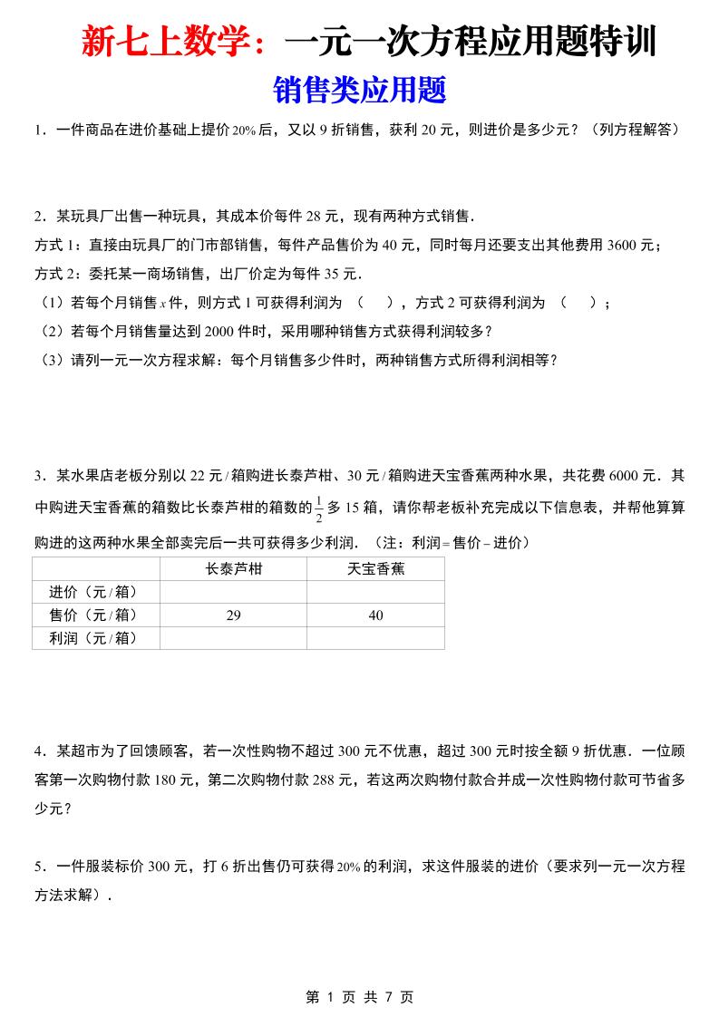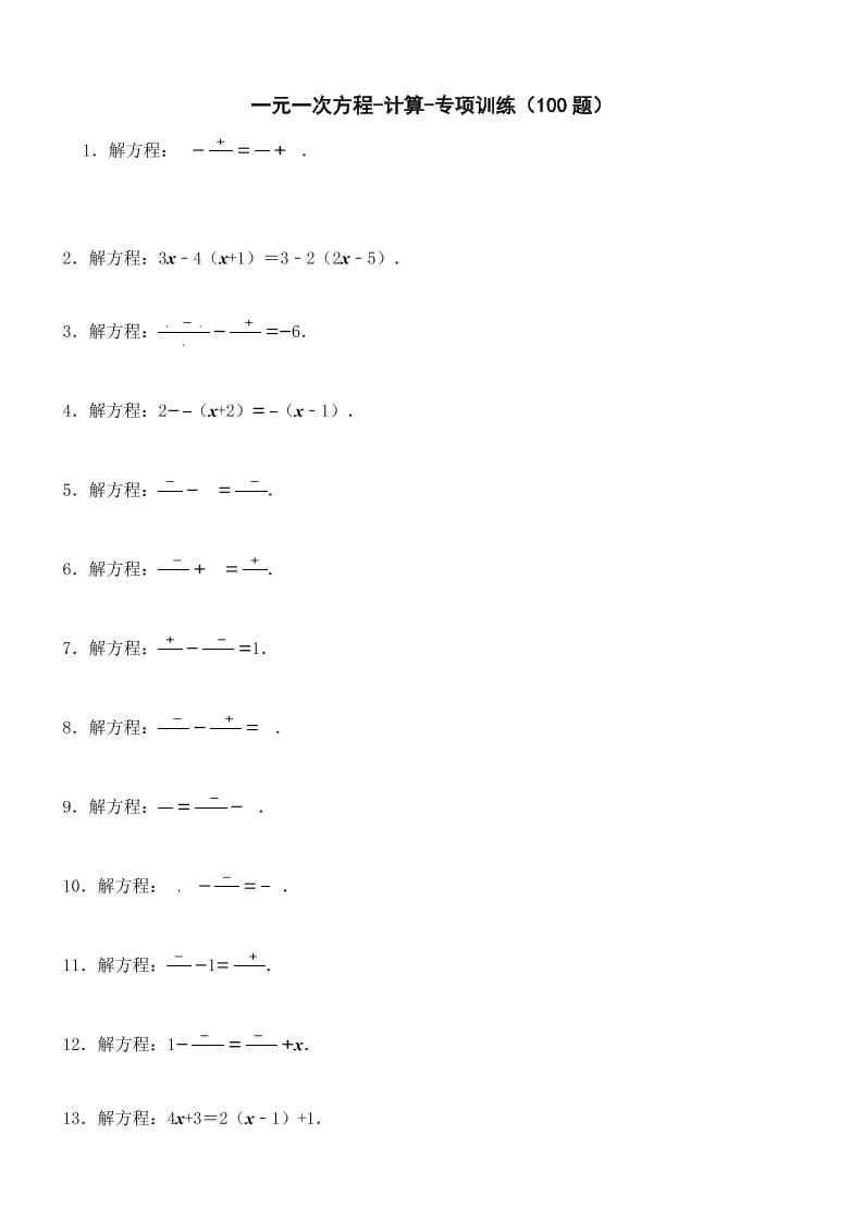 七上数学一元一次方程-计算-专题训练(100题)(1)