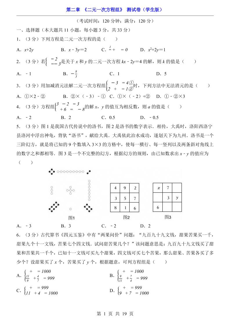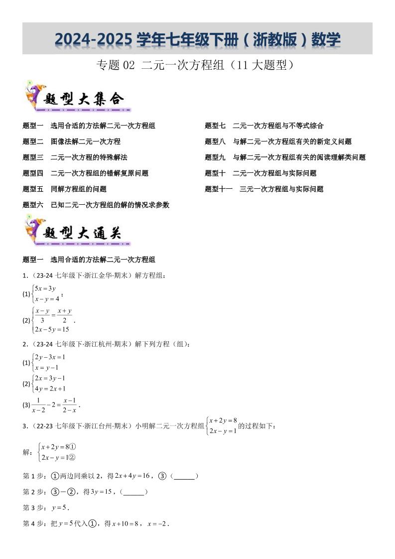【七下浙教数学】专题02 二元一次方程组(考题猜想,11大题型)(原卷版) - 浙7