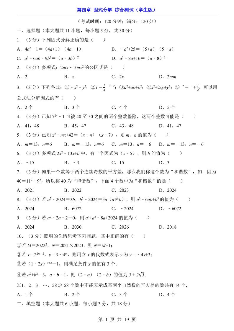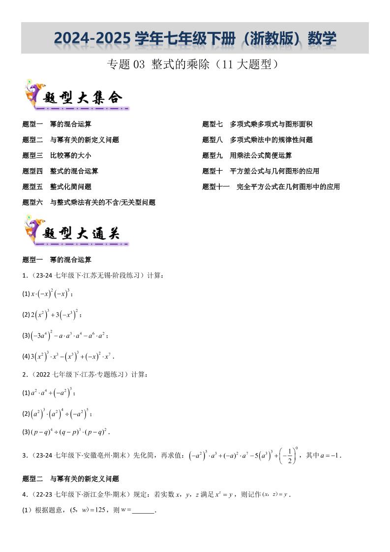 【七下浙教数学】专题03 整式的乘除 (考题猜想,11大题型)(原卷版)