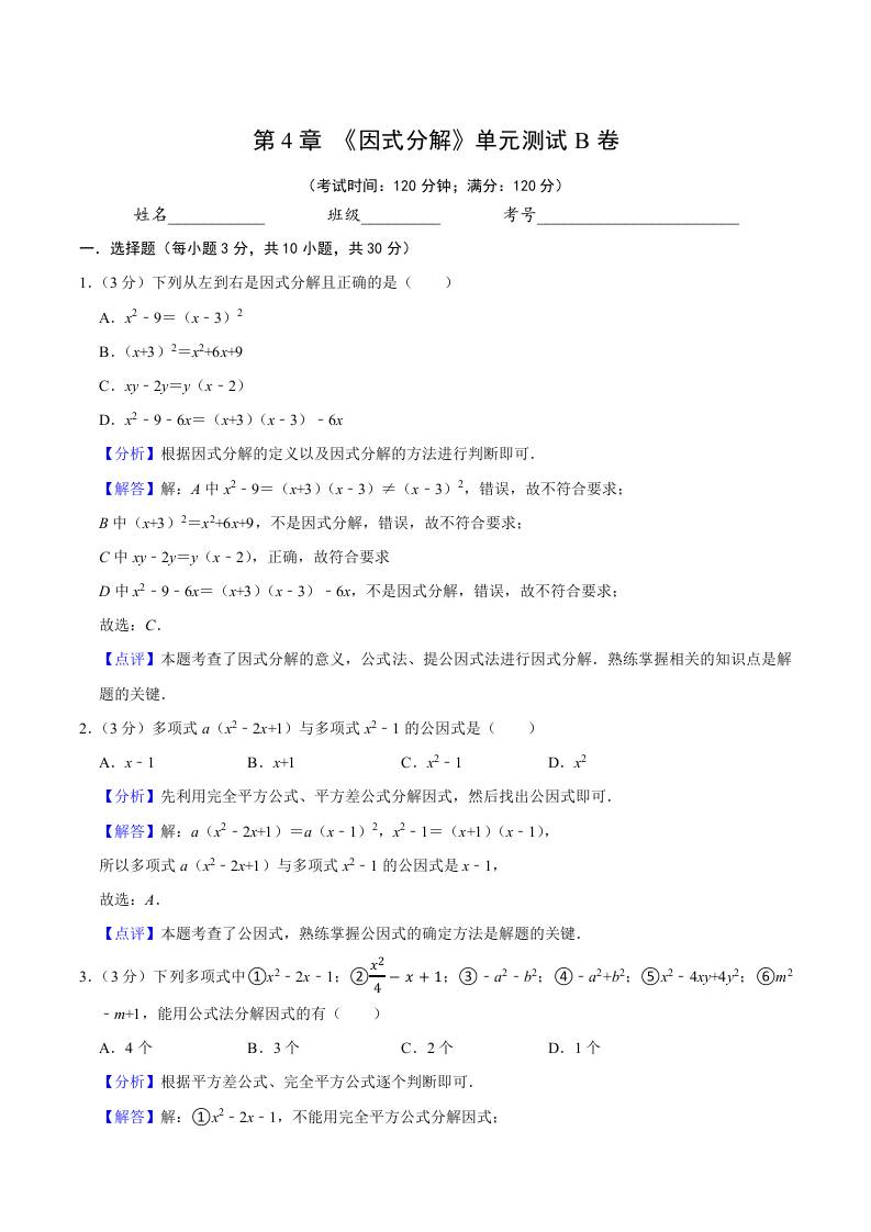 第4章 《因式分解》单元测试B卷(解析版)