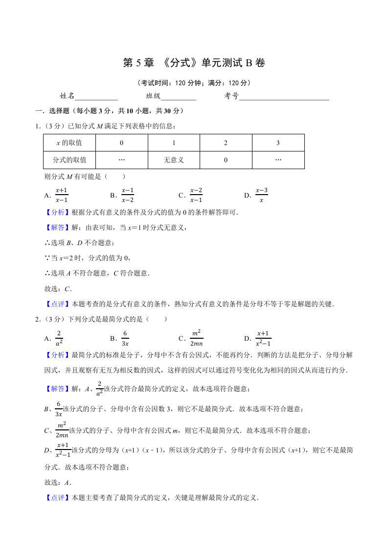 第5章 《分式》单元测试B卷(解析版)