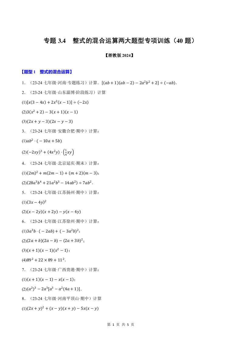 专题3.4 整式的混合运算两大题型专项训练(40题)(原卷版)