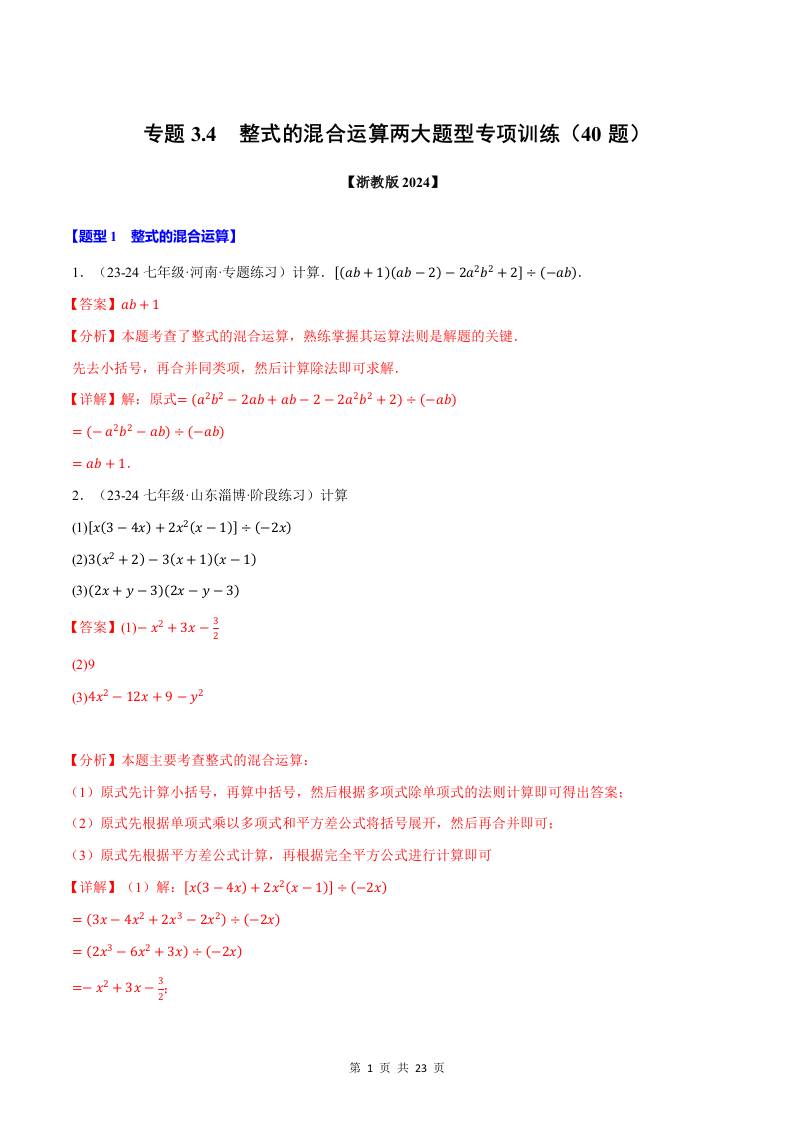 专题3.4 整式的混合运算两大题型专项训练(40题)(解析版)