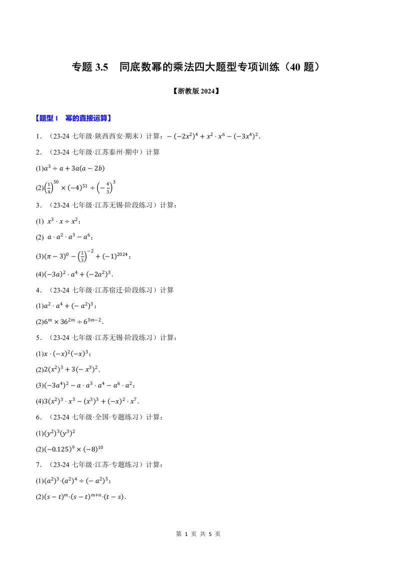 专题3.5 同底数幂的乘法四大题型专项训练(40题)(原卷版)