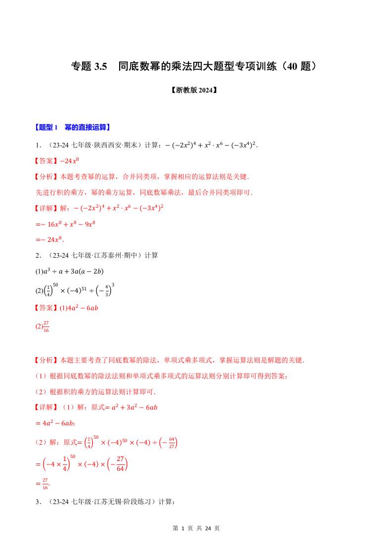 专题3.5 同底数幂的乘法四大题型专项训练(40题)(解析版)