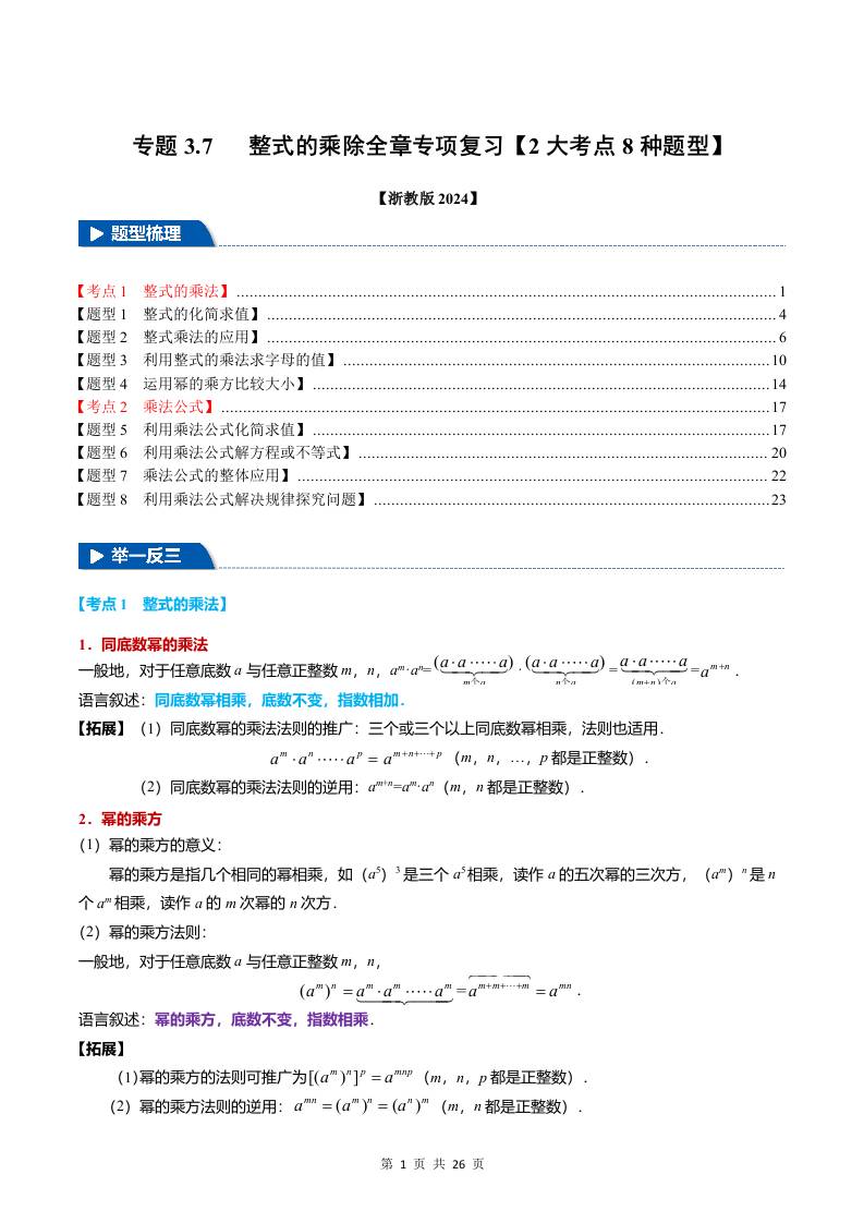 专题3.7 整式的乘除全章专项复习【2大考点8种题型】(原卷版)