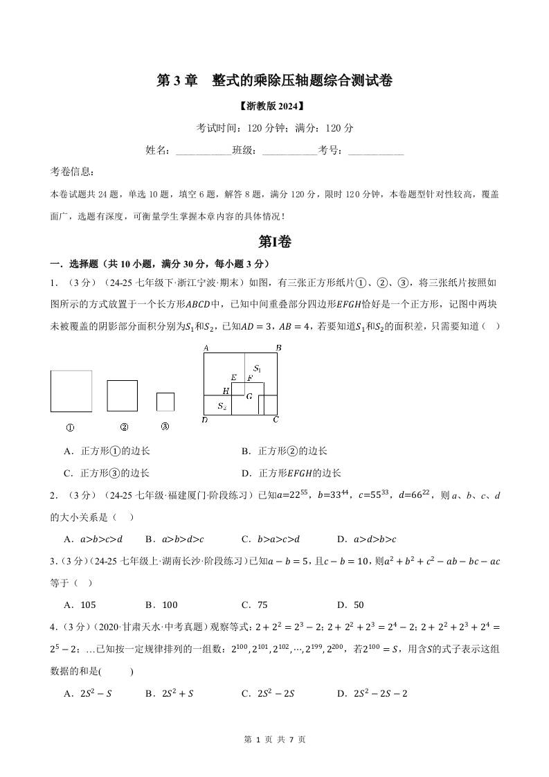 专题3.8 整式的乘除压轴题综合测试卷(原卷版)