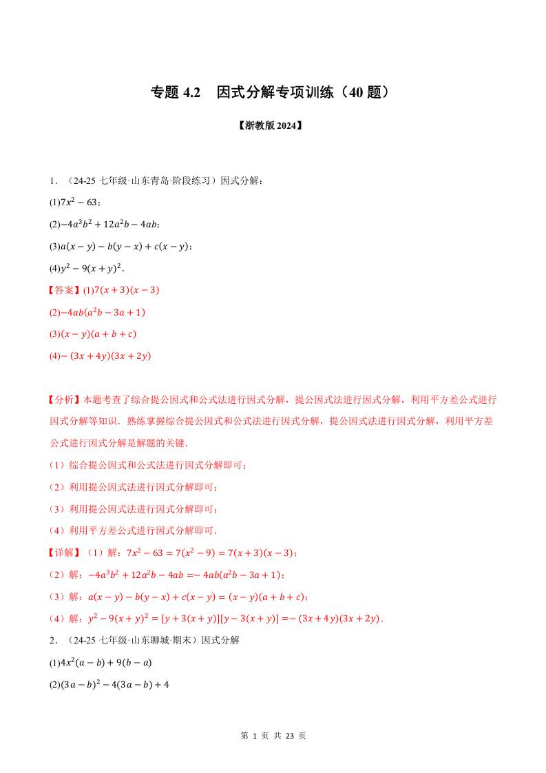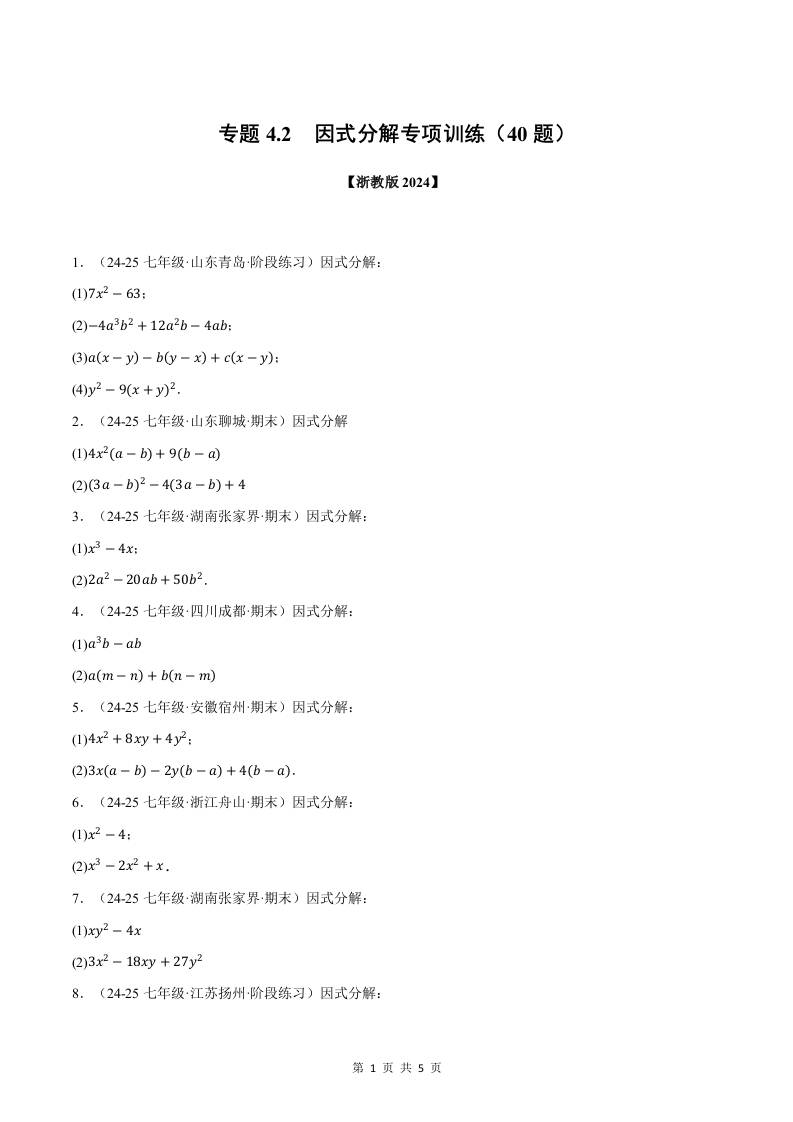 专题4.2 因式分解专项训练(40题)(原卷版)