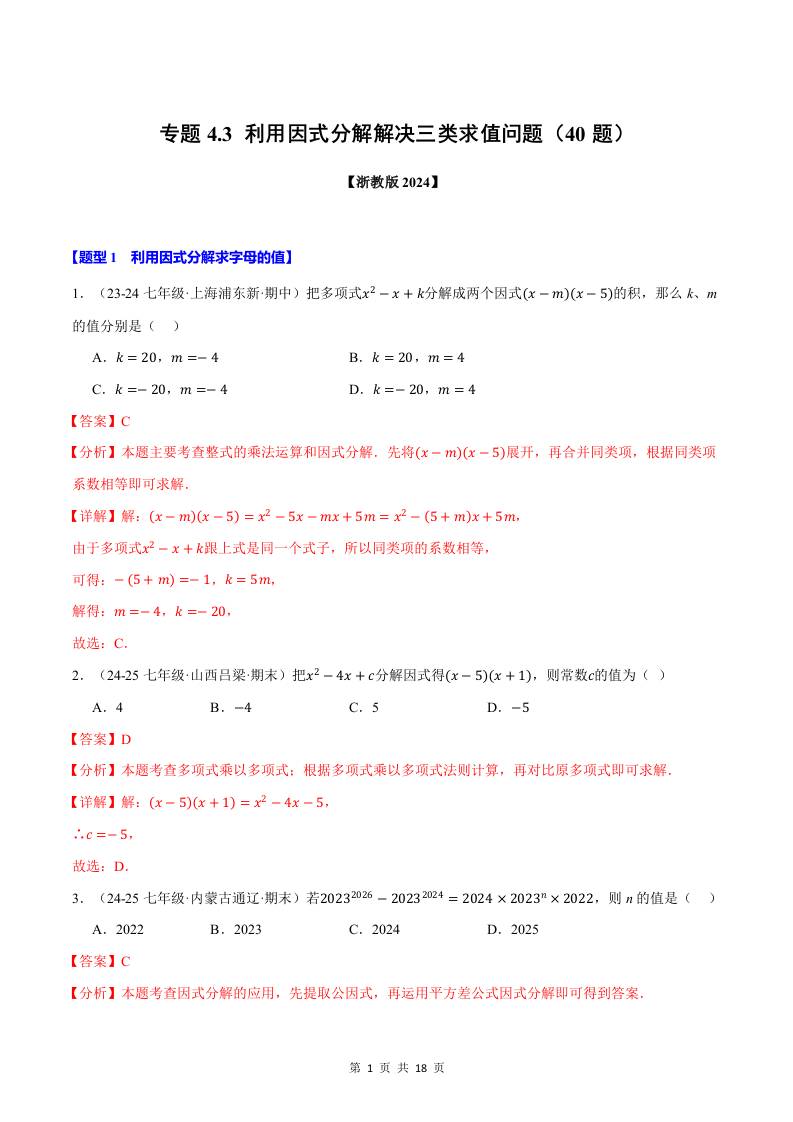 专题4.3 利用因式分解解决三类求值问题(40题)(解析版)