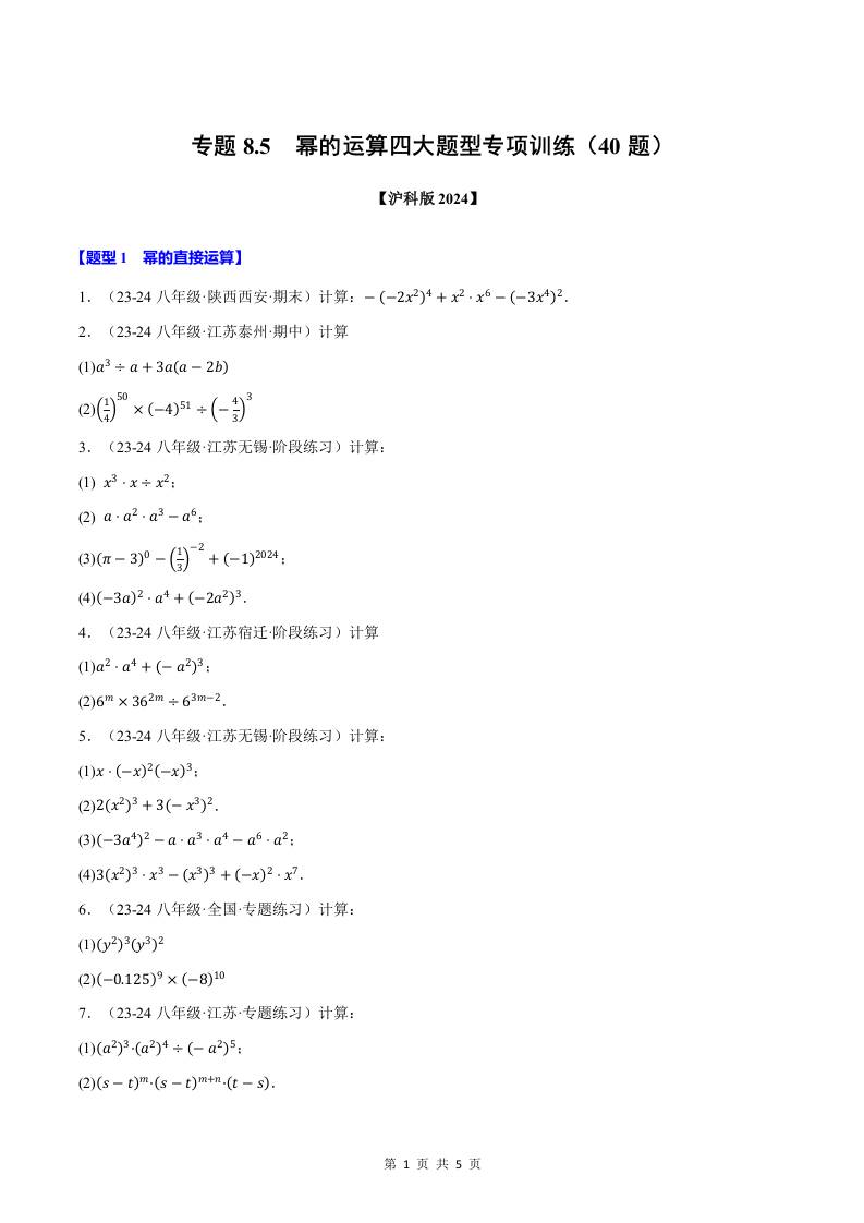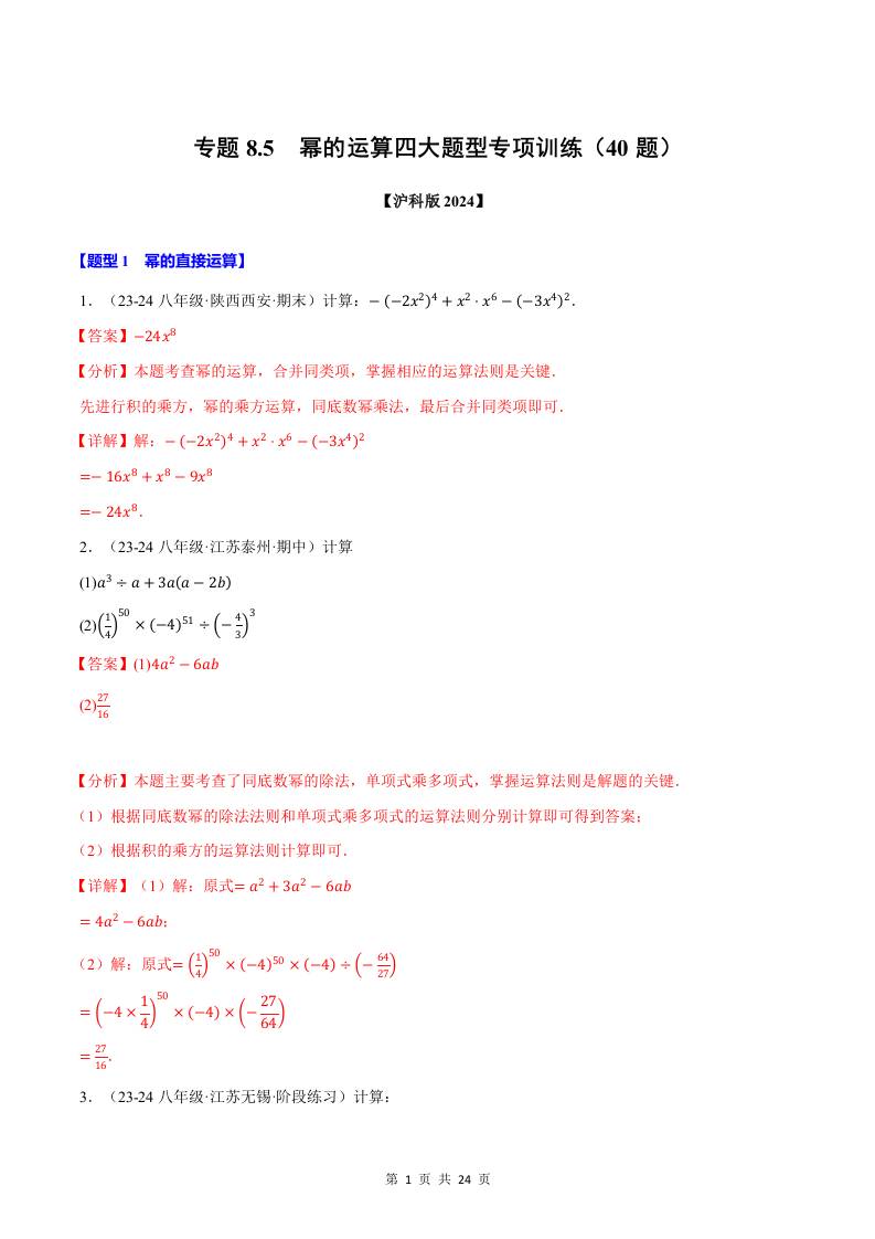 专题8.5 幂的运算四大题型专项训练(40题)(解析版)