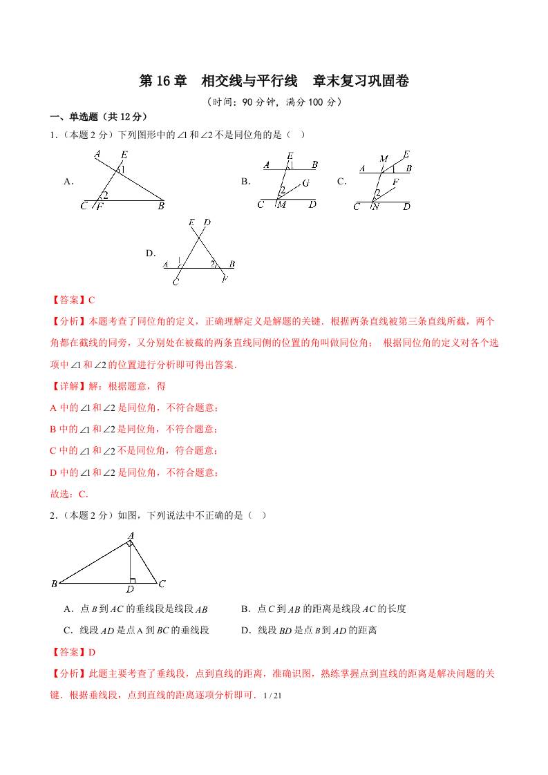第16章 相交线与平行线 章末复习巩固卷(解析版)