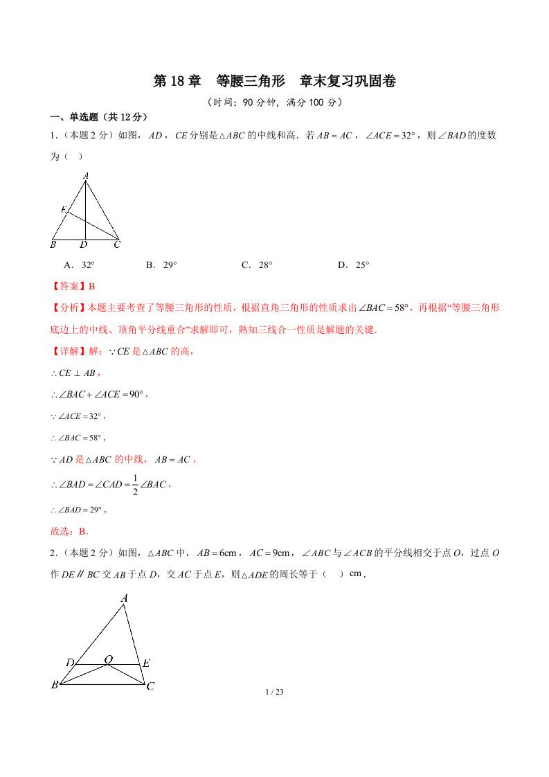 第18章 等腰三角形 章末复习巩固卷(解析版)