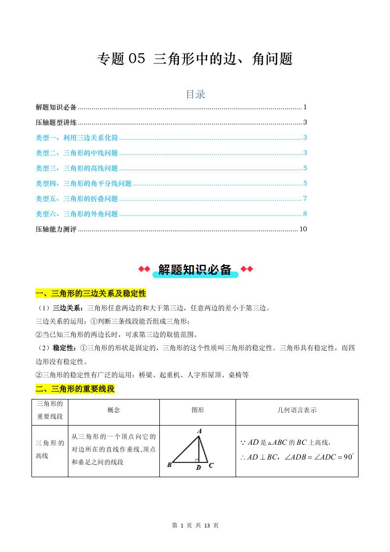 专题05 三角形中的边、角问题(六大类型)(解析版)