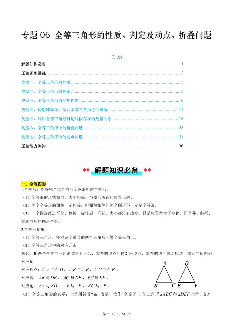 专题06 全等三角形的性质、判定及动点、折叠问题(七大类型)(原卷版)