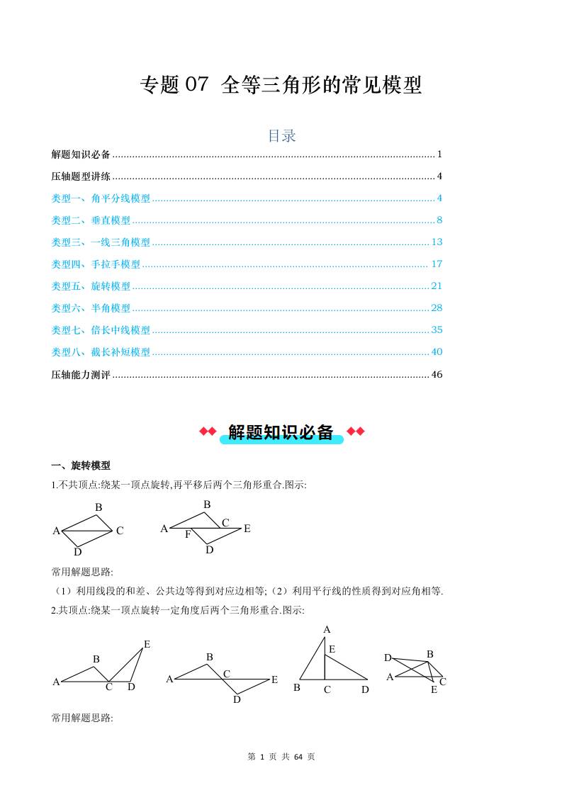 专题07 全等三角形的常见模型(八大类型)(原卷版)
