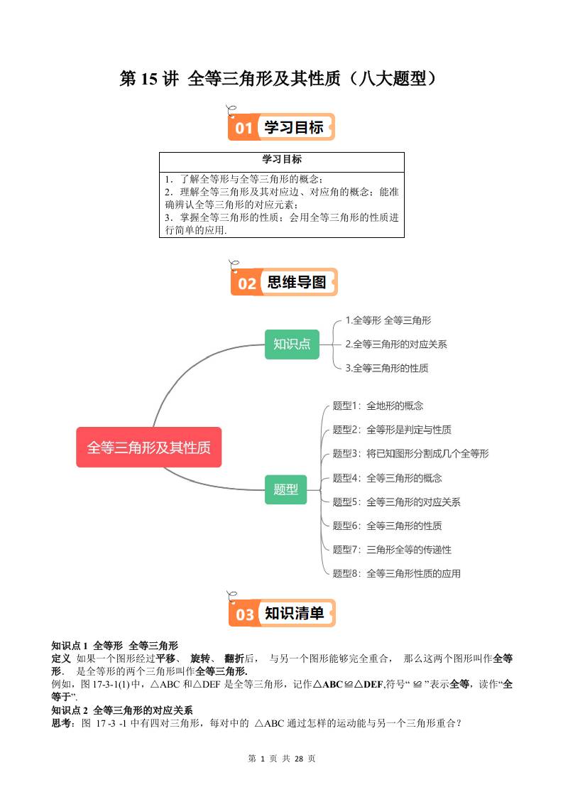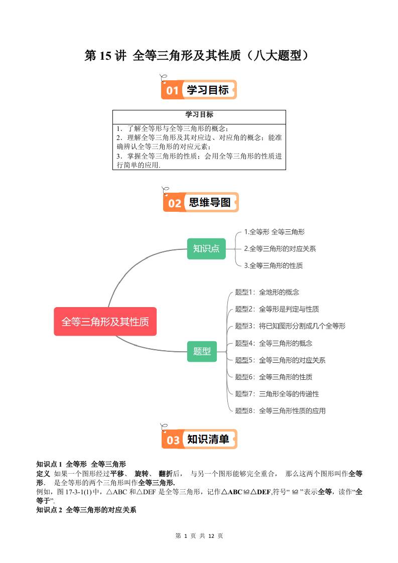 第15讲 全等三角形及其性质(八大题型)(原卷版)