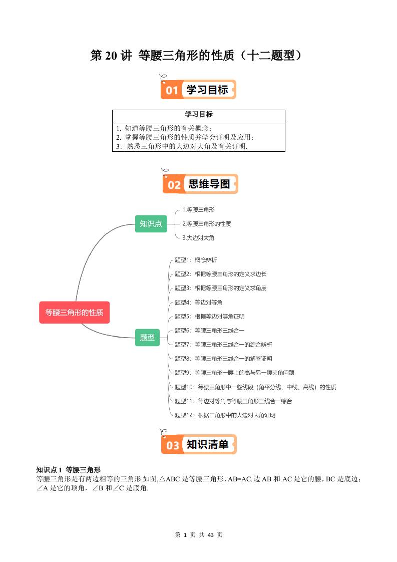 第20讲 等腰三角形的性质(十二大题型)(原卷版)