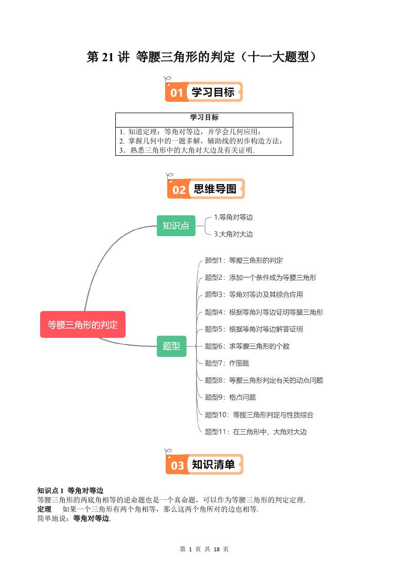第21讲 等腰三角形的判定(十一大题型)(原卷版)