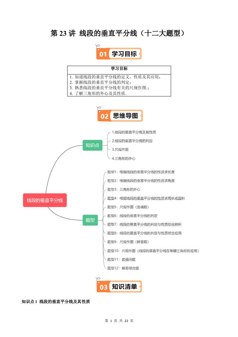 第23讲 线段的垂直平分线(十二大题型)(原卷版)