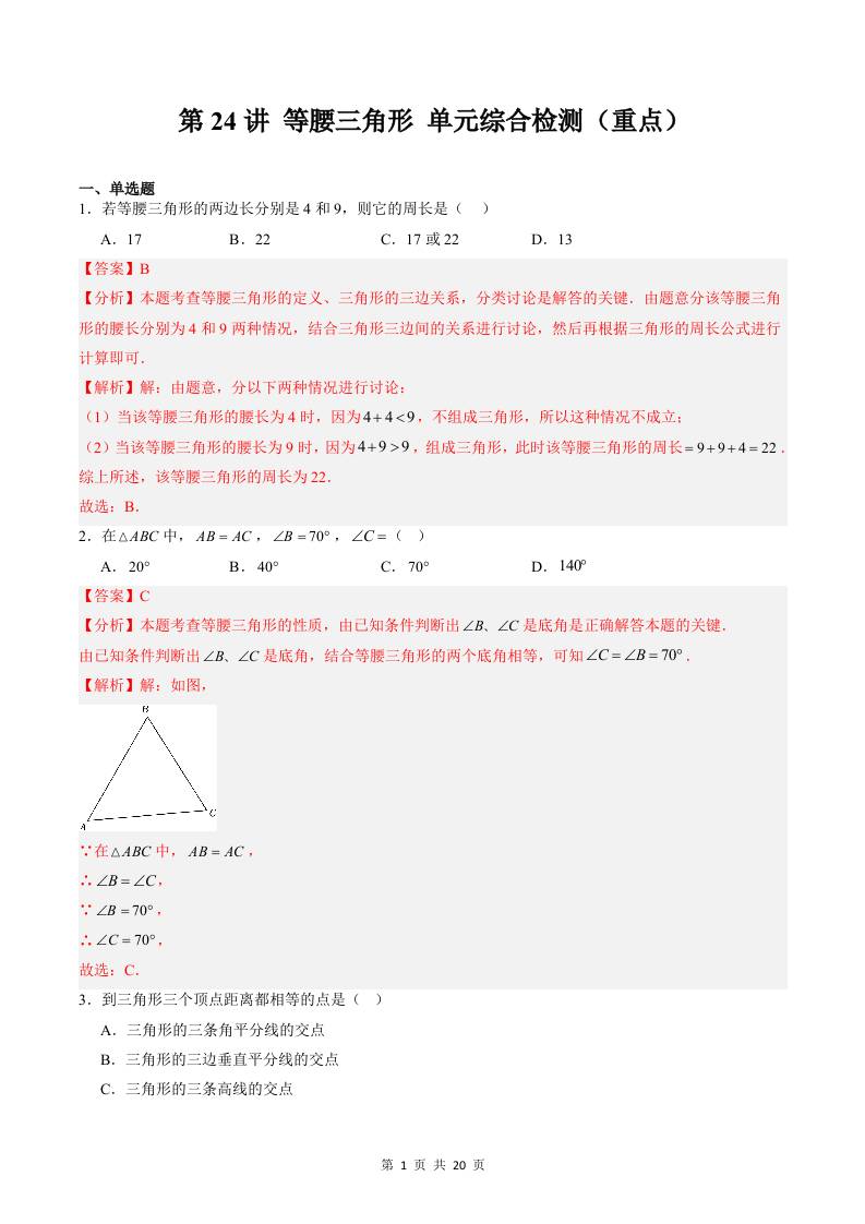 第24讲 等腰三角形 单元综合检测(重点)(解析版)