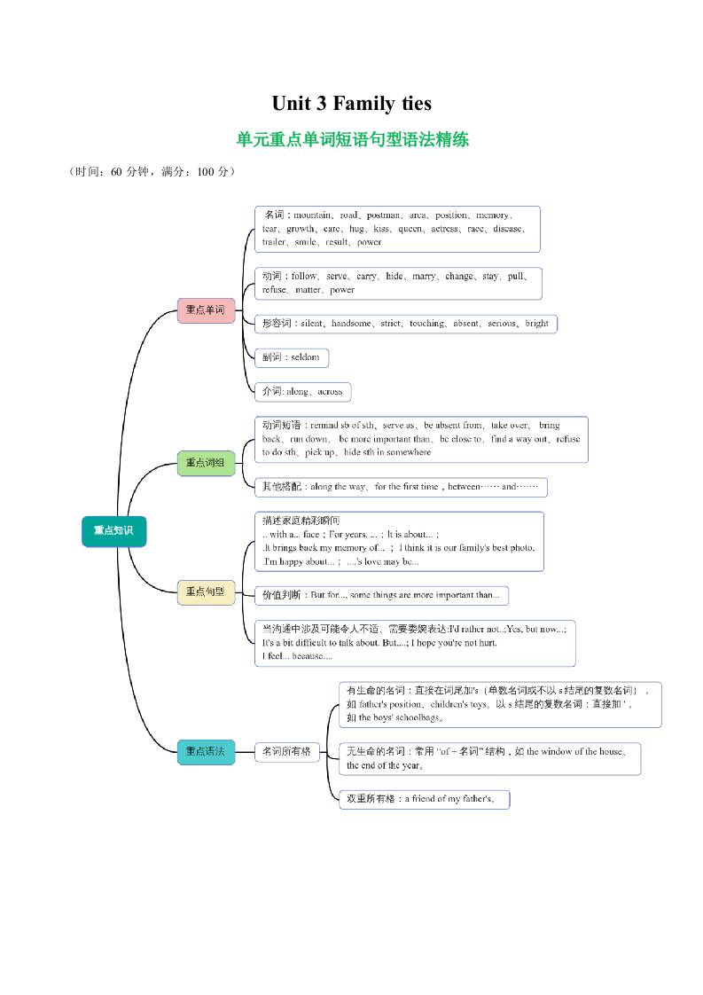 Unit 3 Family ties 单词短语句型语法(教材考点精练)(学生版)