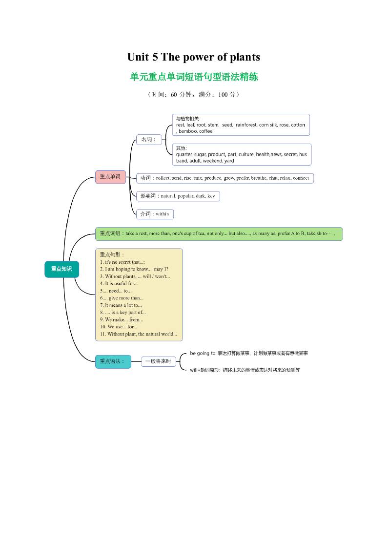 Unit 5 The power of plants 单词短语句型语法(教材考点精练)(原卷版)