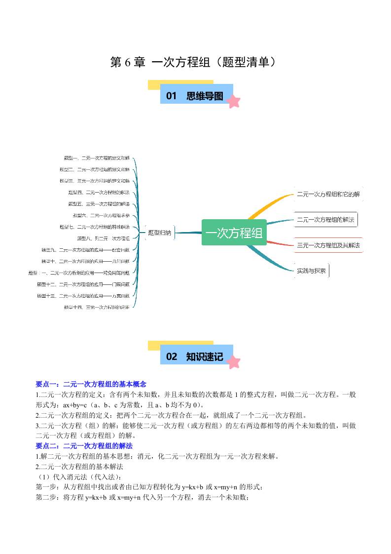 第6章 一次方程组(题型清单) (十四类题型清单)(学生版)