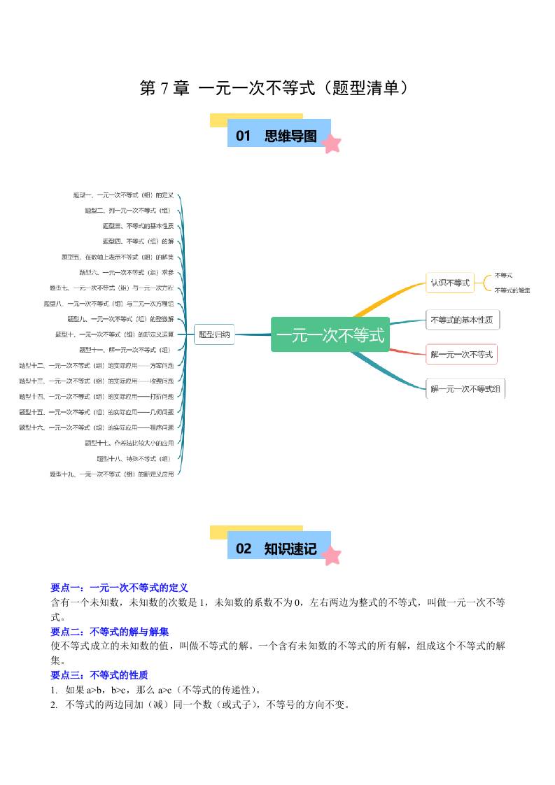 第7章 一元一次不等式(题型清单)(十九类题型清单)(学生版)