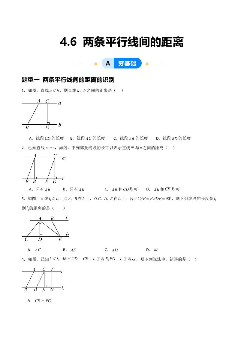 4.6 两条平行线间的距离(3大题型提分练)(原卷版)