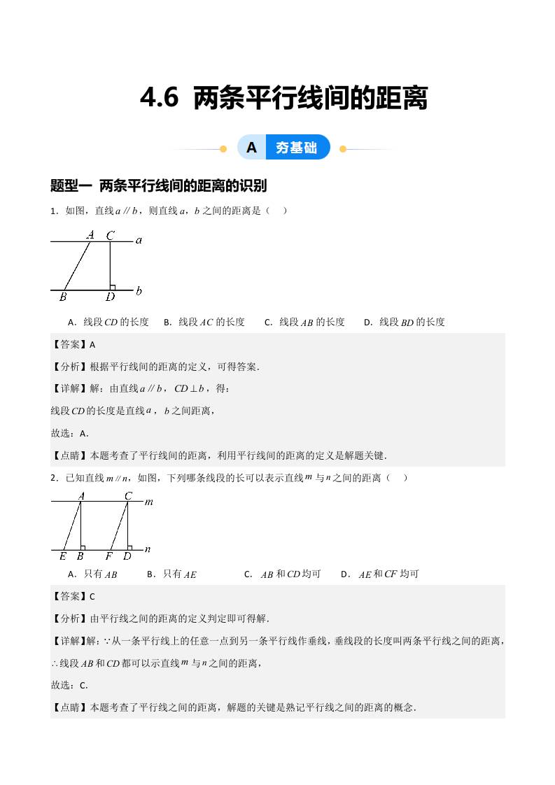 4.6 两条平行线间的距离(3大题型提分练)(解析版)